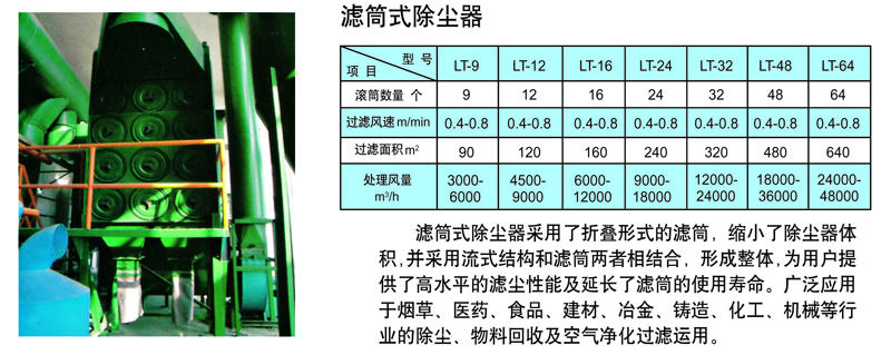 濾筒式除塵器采用了折疊式的濾筒,縮小了除塵器體積,并彩用流式結(jié)構(gòu)和濾筒兩者相結(jié)合,形成整體,為用戶提供了高水平的濾塵性能及延長了濾筒的使用壽命。
